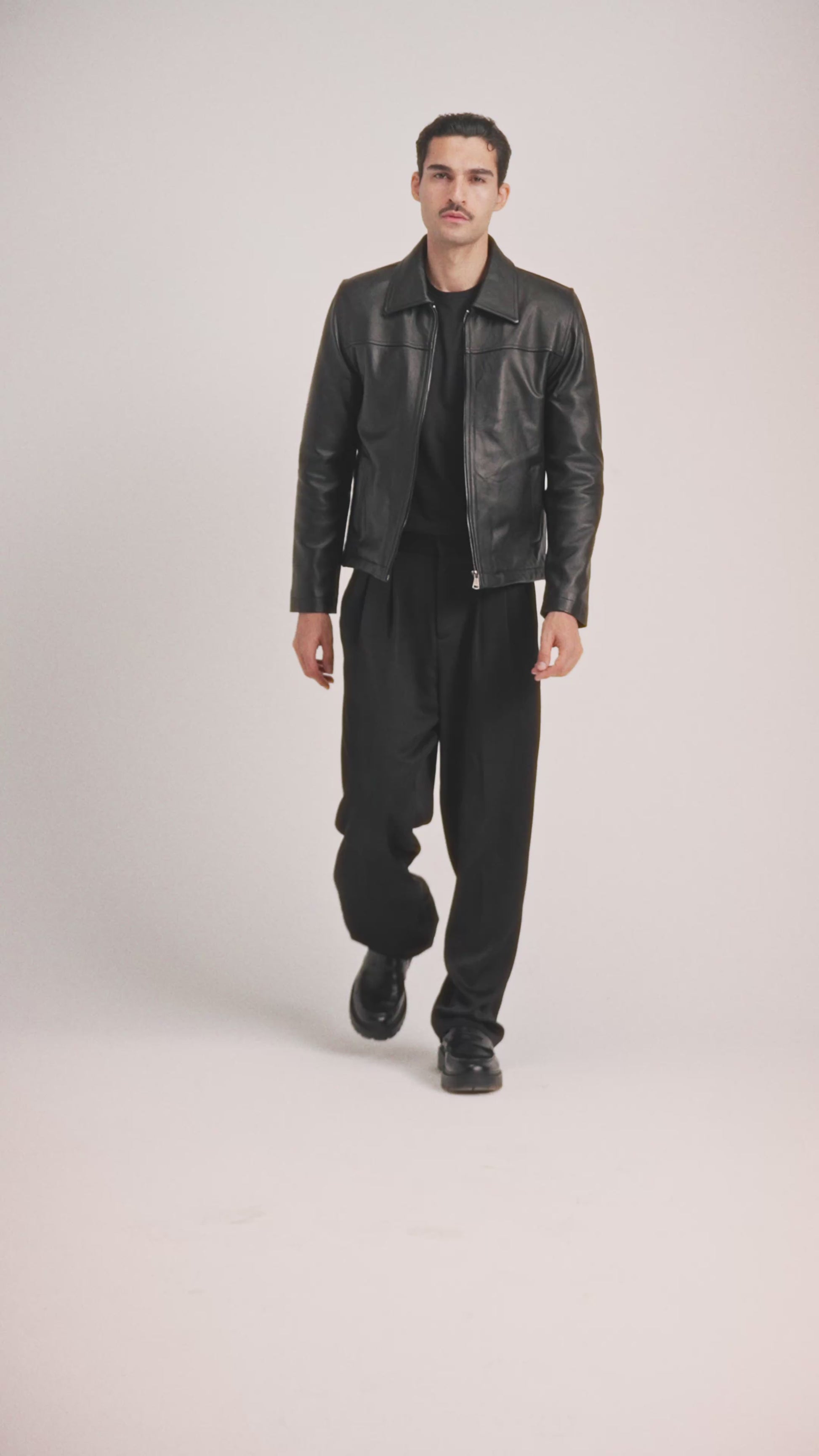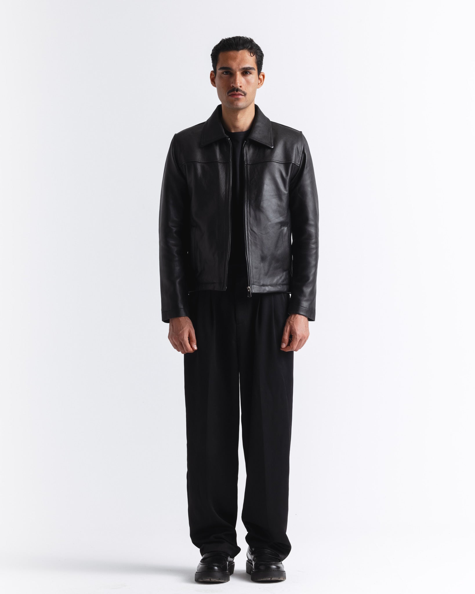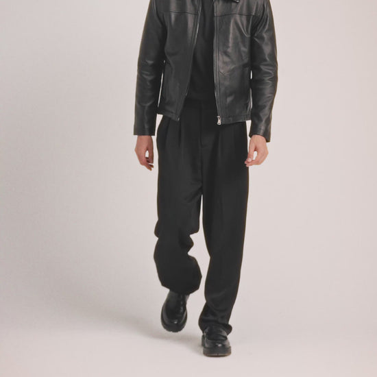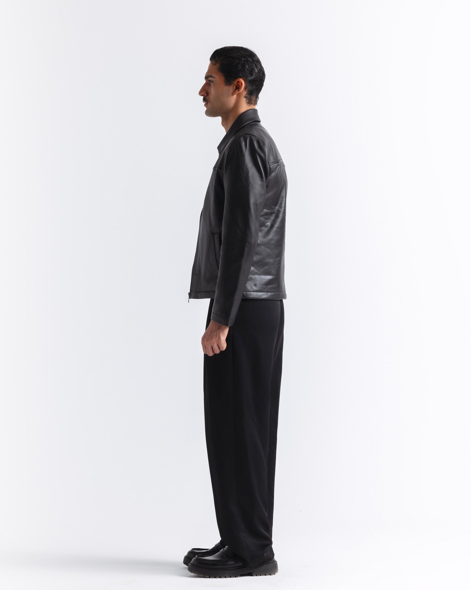 Silent Rebel, a classic cut leather jacket crafted from 100% real leather with a smooth, polished finish.